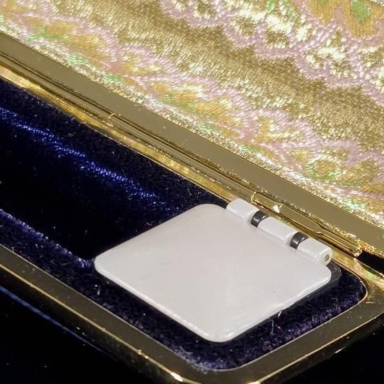 手になじみやすい独特の手触りと、華やかなゴールドフレームで上品なイメージを醸し出します。
