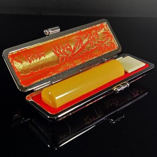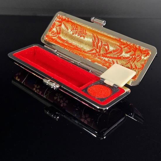 スタンダードなシルバーフレームと朱竹の組み合わせでいつまでも大切な印章を守ってくれます。