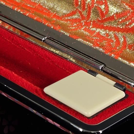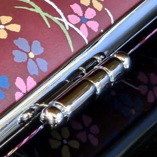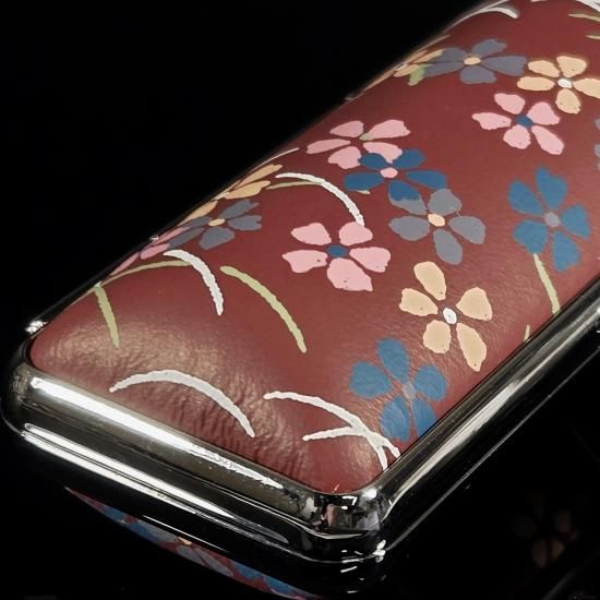 ■赤ローケツ赤ローケツD-12は渋みのある深いエンジ色にカラフルな花柄をあしらった落ち着きのある和柄の印鑑ケースです。